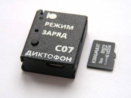 Диктофон «СОРОКА-07» предназначен для записи аудиосигнала со встроенного цифрового MEMS микрофона в моно режиме на карту памяти microSD либо microSDHC Class4 и выше.