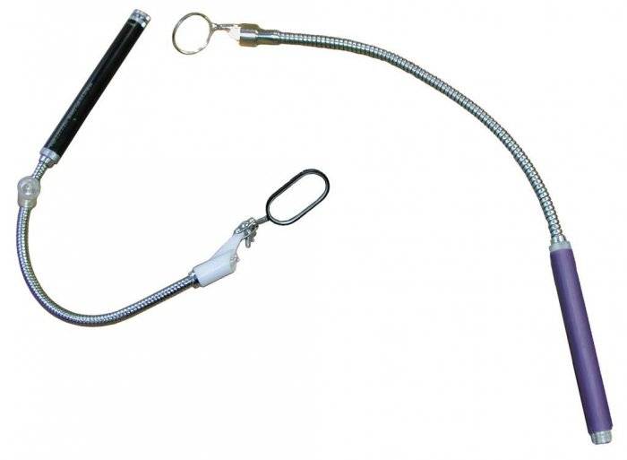 Досмотровое устройство "Поиск-МГ" предназначено для досмотра труднодоступных мест в условиях малой освещенности и полной темноты и представляет собой малогабаритный фонарь с закрепленной на нем телескопической штангой, на которой размещено поворотное зеркало.