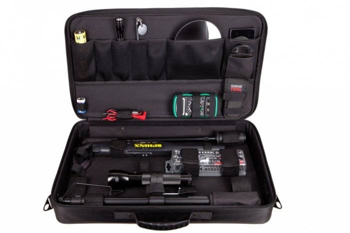 Комплект досмотровых средств "ВЗГЛЯД-КБ"(комплект большой) - предназначен для выполнения задач по визуальному досмотру труднодоступных, слабоосвещенных мест в помещениях, транспортных средствах и грузах, а так же для досмотра людей на наличии холодного и огнестрельно оружия. Досмотр транспорта осуществляется с помощью комплекта сменных зеркал с подсветкой фонарем, комплекта щупов.Досмотр людей осуществляется с помощью ручного металлодетектора. Комплект уложен в удобный жесткий кофр с элементами фиксации предметов, выполненный из водоотталкивающего материала.