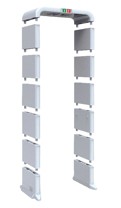 Сборно-разборная модель металлодетектора состоит из 13-ти отдельных частей, которые соединяются между собой по принципу пазла. PC P 1800 M K предполагает выбор количества зон детектирования (18/12/6) в зависимости от важности охраняемого объекта, его уровня требований к безопасности. Арочная панель обладает функцией узконаправленного детектирования – выставляются параметры запрещенных предметов (вес, объем, размер), что исключает срабатывание светозвуковой тревоги на металлические предметы бытового характера: часы, пряжки, ключи. Принцип действия металлодетектора основывается на использовании электромагнитного поля, которое обнаруживает металлические предметы, интеллектуальная составляющая с применением световой и звуковой сигнализации позволяет определять количество металла, локализовать место его нахождения на теле, одежде человека.
