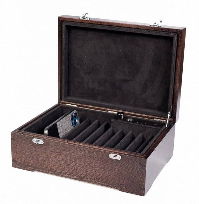- Акустический сейф для 11 телефонов, включая размер Plus, используется при проведении совещаний