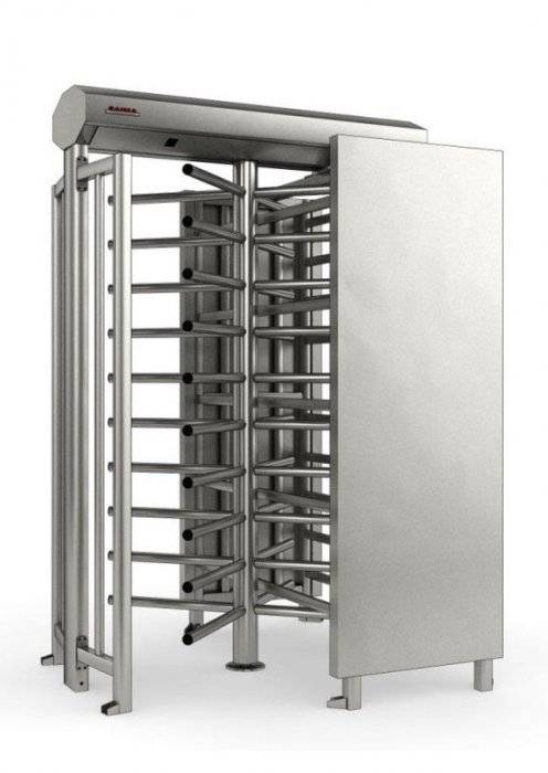 Корпус из нержавеющей стали. Четыре секции, проход только по одному. Вес — 300 кг. Высота прохода — 2080 мм.