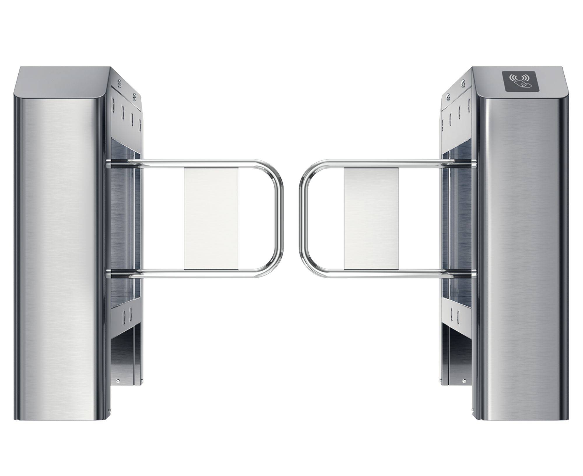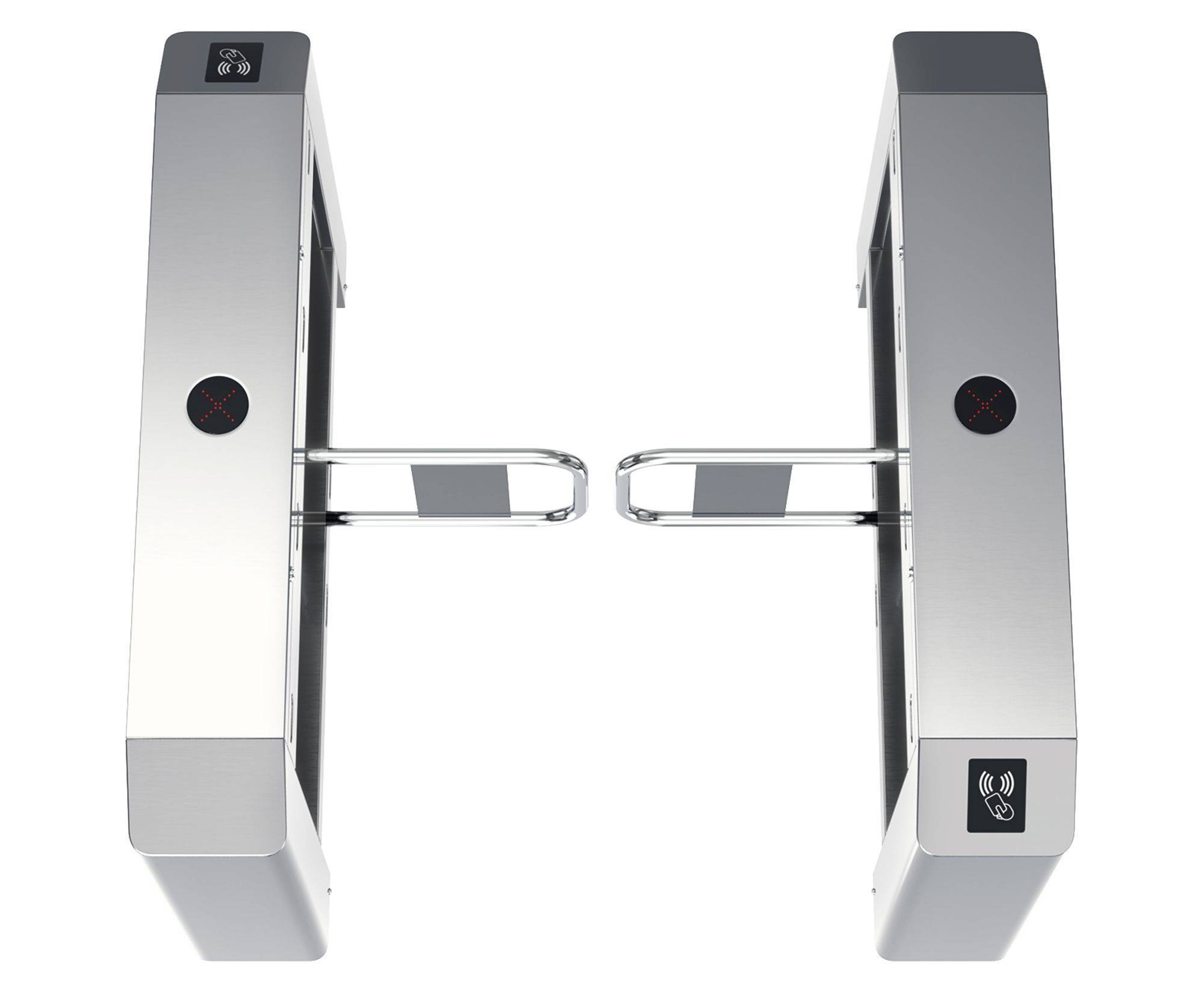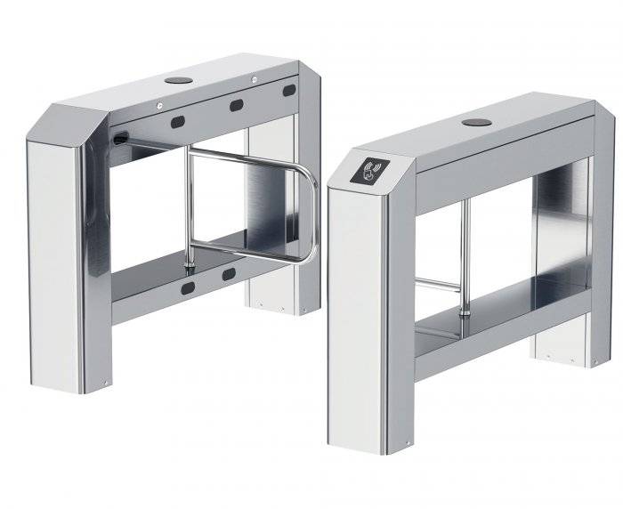 Распашные турникеты предназначены для организации проходных с повышенными требованиями к дизайну и комфортабельности прохода. СДВ 500 достаточно компактная модель с высокой проходимостью, которая подойдет для применения в интенсивных условиях эксплуатации. Турникет СДВ 500 — это преграждающая конструкция, имеющая створки, которые закреплены на вертикальных валиках и могут распахиваться как в одну сторону, так и в другую. Распашной турникет оборудован функцией «Антипаника». Эта функция автоматически освобождает проход в экстренных случаях или при сбое электропитания, также она может быть активирована с пульта ДУ.
