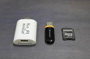 Устройство поддерживает работу с накопителя типа SD, micro SD и USB. Также существует возможность использования USB удлинителей.